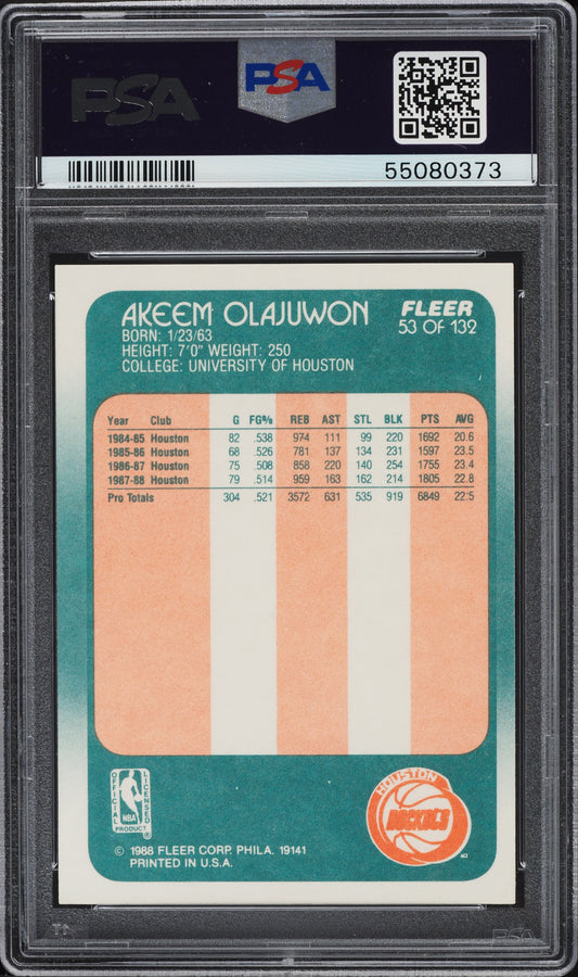1988 FLEER BASKETBALL HAKEEM OLAJUWON #53 PSA 8 NM-MT