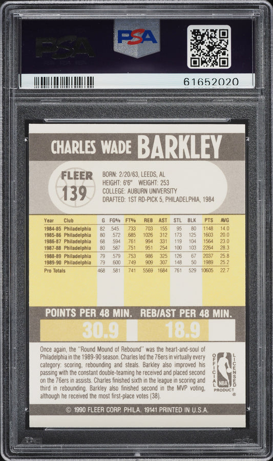 1990 FLEER BASKETBALL CHARLES BARKLEY #139 PSA 9 MINT