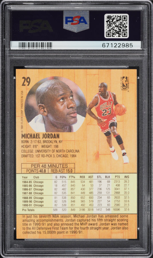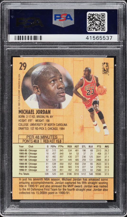 1991 FLEER BASKETBALL MICHAEL JORDAN #29 PSA 8 NM-MT